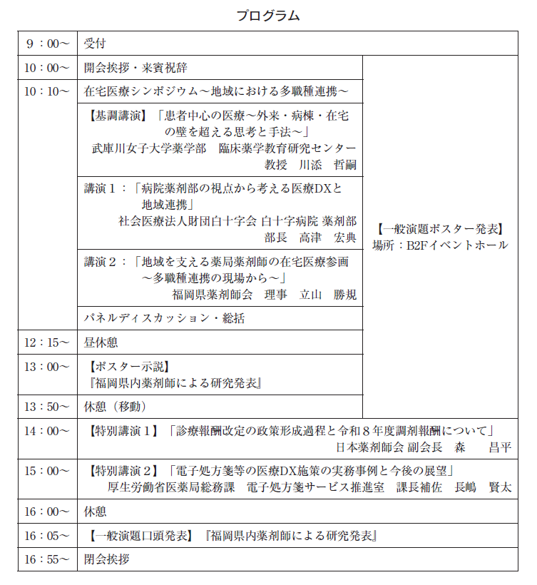 これまで別途開催しておりました「福岡県薬剤師会学術大会」と統合し、より充実した内容で開催いたしますので、従来通り一般演題発表を併催いたします