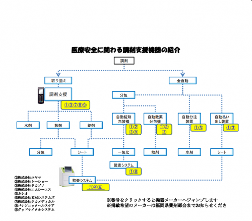代表的な機器メーカーのリンクを付していますので、下の「調剤支援機器」より興味のある数字をクリックして下さい。