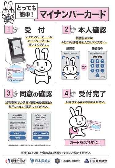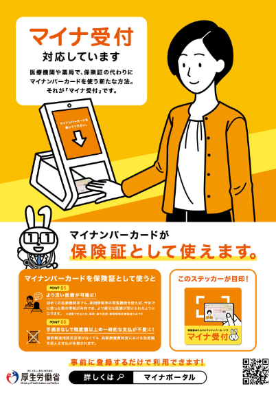 ◎患者にマイナンバーカードを持ってきていただくようよびかけるポスター