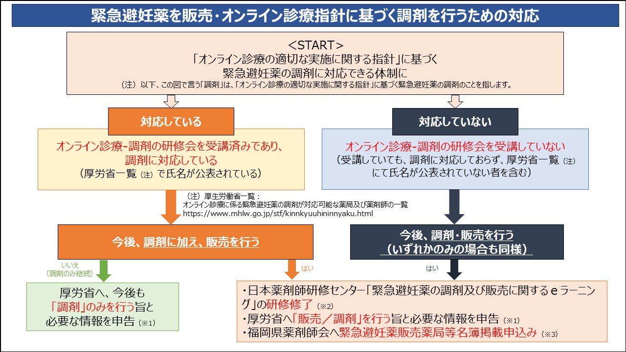 ご登録いただいた情報は、福岡県医師会へ提供いたしますので、入力内容に誤りがないよう十分ご確認のうえご入力ください。また、緊急避妊薬の調剤及び販売における手続きは、以下の図をご参照ください。