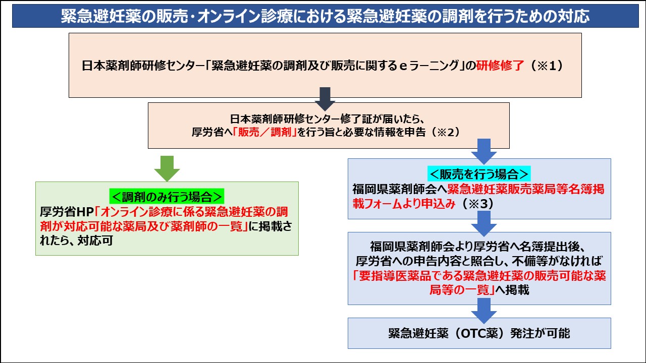 これらを踏まえ、福岡県における適正な提供体制の構築を目的として、本会と福岡県医師会が連携体制を整備し、その一環として、緊急避妊薬販売薬局等名簿と連携医療機関名簿を共有しています。