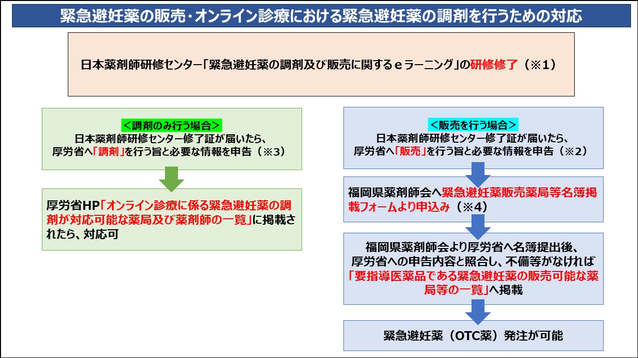 これらを踏まえ、福岡県における適正な提供体制の構築を目的として、本会と福岡県医師会が連携体制を整備し、その一環として、緊急避妊薬販売薬局等名簿と連携医療機関名簿を共有しています。